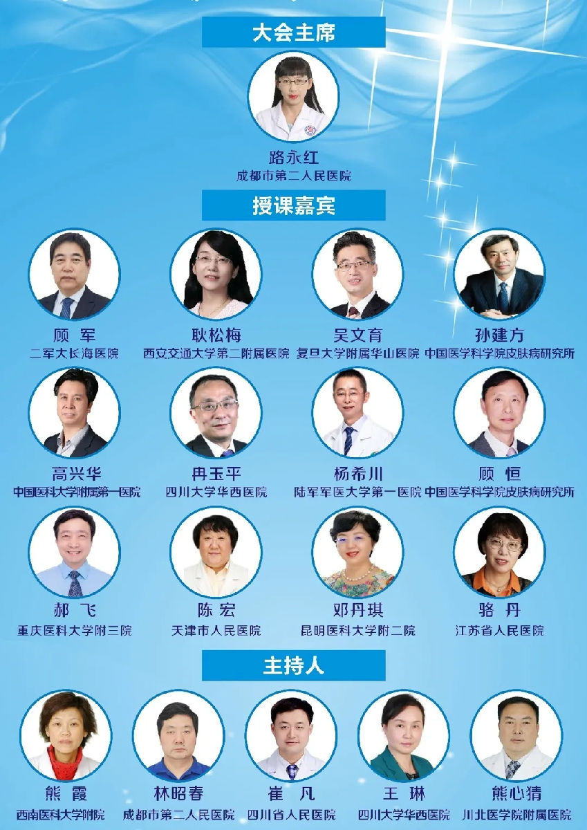 2020年8月15日~8月16日,成都市第二人民医院皮肤科第20期国家级继续教育线上学习班顺利召开。学习班由我院皮肤科路永红主任担任大会主席,特邀12名国内顶级皮肤科专家授课。