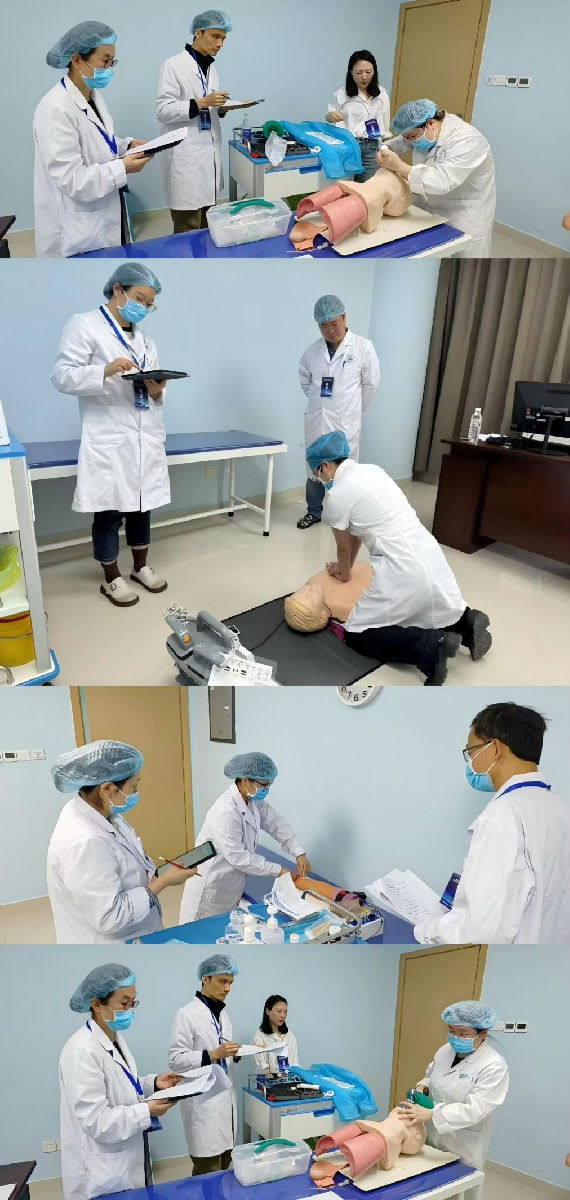 本次OSCE(客观结构化临床技能考试)技能大赛严格按照住院医师规范化培训结业考试要求,采取多站式比赛形式,每位考生需完成常见技能综合考站、特殊病例技能考站以及必考技能考站,每站配备考官2名,SP(标准化)病人和物品整理员1名,比赛内容参照国家住院医师结业技能考试要求进行,主要为麻醉科基本技能操作以及普通、特殊病例临床思维分析口试和医患、医医沟通交流能力。全体考官秉成公平、公正、公开、公平的原则,严格按照操作要点和评分细则打分,刘少星主任和朱波副主任担任巡考,成都市医师学会及医院教培部进行督查。此次比赛还大规模的利用了成都市第二人民医院仁济医学模拟中心的专业考站和技能考试模型,采用信息化平台,从大赛设计到大赛实施运行不断优化,采用无纸化运行系统,借助平板电脑系统打分,从学生入场到出场实现360度无死角监控,优化解放人力资源,保障现场组织在静音环境下有序进行。