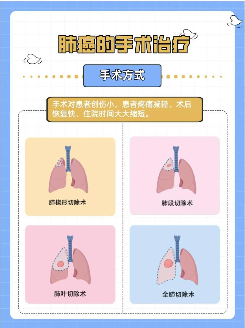 1. 手术:早期肺癌的首选,切除肿瘤及周围组织。